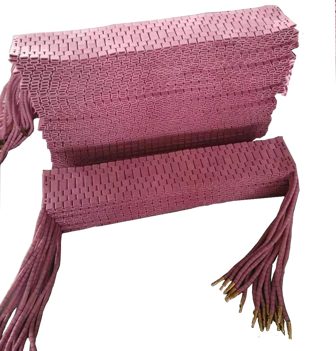 陶瓷加熱器又稱柔性加熱器,它是選用鎳鉻合金絲纜,外套高純度氧化鋁陶瓷絕緣件制成履帶式或繩式加熱器以及其它產(chǎn)品形式。它能根據(jù)工件形狀、尺寸制作,可以拼接、彎曲、纏繞緊貼工件加熱,具有使用范圍廣,升溫速度快,熱利用率高,操作方便等特點。表面最高溫度可達1050℃。適用于各種金屬構(gòu)件,如大型塔器、高壓容器、橋梁、高壓管道的焊接預(yù)熱,焊后消除應(yīng)力。亦可用于化工管道,容器的輔助加熱,且室內(nèi)室外不限,是目前穩(wěn)定、實用的局部加熱設(shè)備。